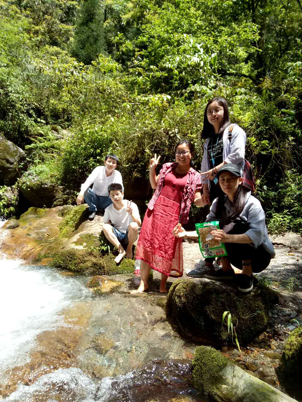 伴著明媚的陽光我們開啟了登山之旅,1700米的高度并沒有讓我們卻步,登山路上雖是汗流浹背,但卻能夠靜靜欣賞四周的美景,品味自然志趣。一路上綠意盎然,遠處高山層疊,近處流水潺潺,隨著高度的增加,壯觀的瀑布映入眼簾,陽光照耀下,瀑布像鍍上了一層金色光環(huán),美不勝收。汗水打濕了衣服和頭發(fā),腳步也越發(fā)沉重,但方法人沒有一個人放棄,大家自發(fā)地為自己、為對方加油打氣,再短暫休息后又卯足了勁繼續(xù)前進。